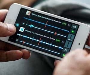 There’s some great DJ software for iPhones that can easily set loops from your favourite tracks, adjust their length and effects applied to them all just by swiping your finger, pinching and zooming, tapping and adjusting to create new interesting sounds.